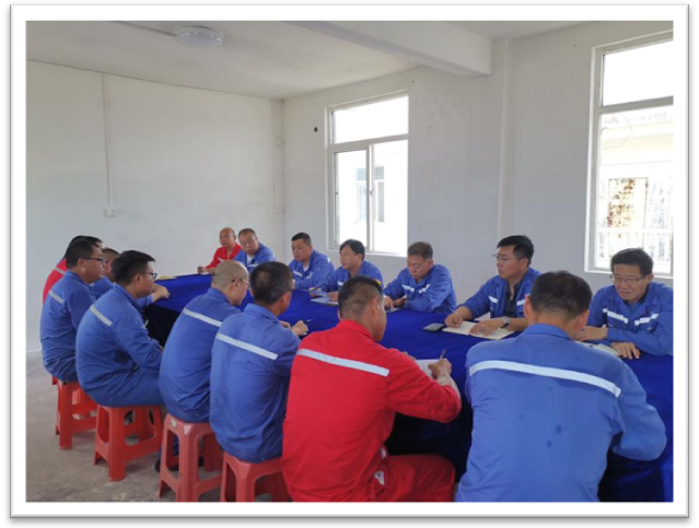 2020年7月25日下午台山项目部召开第一次周例会,由项目经理门猛宣布项目管理人员岗位及其工作职责,并对8月1日开工前重点工作进行安排。